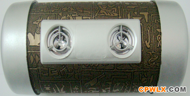 4吋皮革低音炮,双高音,底部带导气管,埃及文皮革或根据客户要求定色,220V,DC12V通用,可带收音,含红外遥控器,分体式220电源连接线,12V连线,固定带2条!